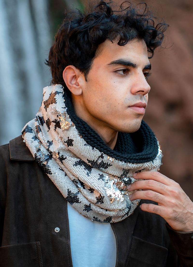 Channel your inner rock queen with the Rock ’n’ Stars Sequin Snood. White sequins with bold black stars flip into full gold with a sweep of the hand, offering two dazzling looks in one.