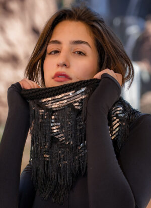 Shine bright with the Silver Spark Sequin Fringe Snood. Fully encrusted in silver sequins with flowing sequin fringes, this snood is pure radiance in motion.
