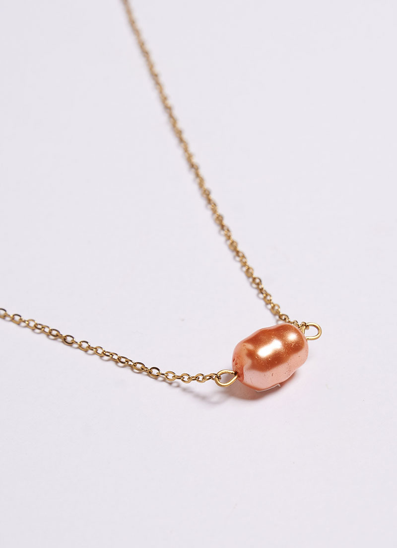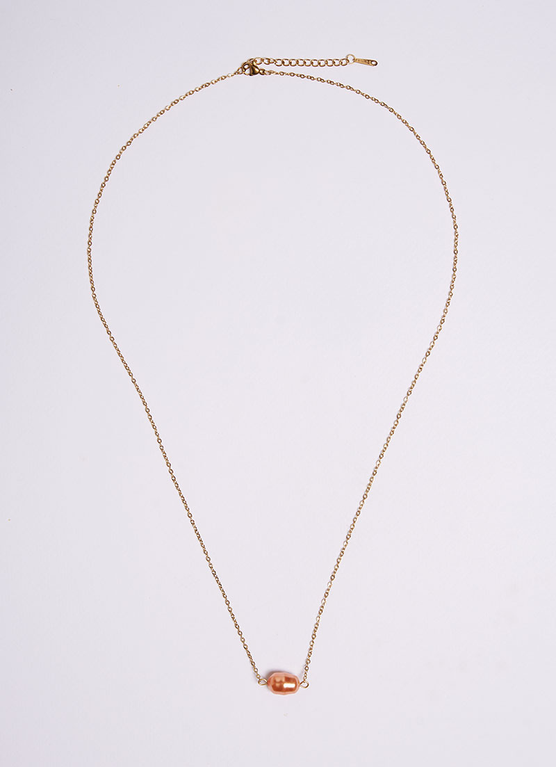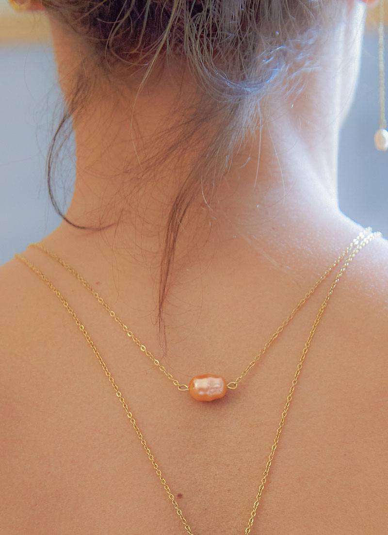 This handcrafted ICONICK unisex necklace features a genuine orange freshwater pearl, selected for its organic form and natural character. Each pearl is unique — a reminder that perfection lies in authenticity.